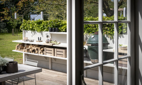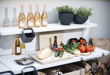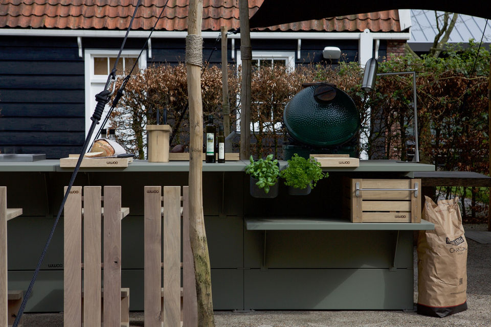 Ta přináší dvě odlišné kolekce, samostatný ostrůvek, nebo kuchyň se zadní deskou, což je ideální řešení právě k plotu nebo ke zdi. Kuchyně je možné sestavit na míru z katalogových modulů (co se týče rozměrů), výběr je ze tří barev a vybavení jako gril, dřez, fireplace atd. Sestavu pak můžete navíc doplnit třeba o barový set, světla nebo úložné dřevěné boxy pasující do polic.